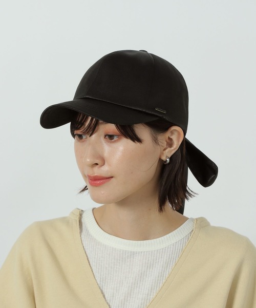 背面のリボンデザインが可愛らしいキャップ。リボンでフィット感の調整が可能です。サテン生地で光沢感があるのもポイント。オールシーズンお使いいただけ、シンプルなコーディネートに映えるアイテムです。