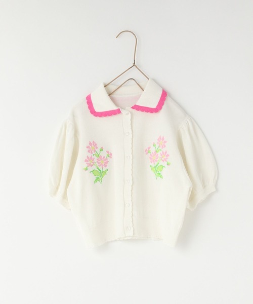 ■デザイン■秋も大人気だったフラワー刺繍カーディガンが半袖バージョンになって登場!素材を軽くし、春夏の羽織りとしても、プルオーバーとして1枚でも着やすくアップデートしました。コンパクトなサイズ感なのでボリュームあるボトムとの合わせがオススメ!オーバーオールやワンピースの上から羽織りとして着て頂くのもオススメです。