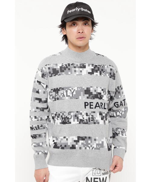 デジタルテイストのカモフラージュとボーダー柄を調和させた、ピクセルカモボーダージャガード カシミヤタッチコットンモックネックニットプルオーバー。ミリタリー&ワークテイストをあえてPOPに表現した、PGらしいインパクトのあるニットアイテムです。上質感溢れるカシミヤライクなふくらみのあるソフトな風合いと滑らかな肌触りで適度なハリがあり、静電防止、ソフトタッチ、抗菌防臭を併せ持った快適機能ニット糸を使用。ゴルフの動きやすさを追求しつつ、同時に着た時にシルエットを綺麗に見せてくれるスタイリッシュな雰囲気も魅力です。真冬のゴルフに、アウトドアに、タウンユースに大活躍する逸品です。 PEARLY GATES(パーリーゲイツ) 1989年春にスタート。 メンズ事業部のスタッフたちが、ゴルフを始めることになった。 ところが、自分たちが着たいと思うゴルフウエアがない。 「それならば自分たちで作ろう!」という想いから全ては始まりました。以来、「もっと気軽にもっと楽しくゴルフをしよう」というコンセプトのもと、あらゆる枠組みを超えた新しいゴルフウエアとゴルフ本来の素晴らしさを、パーリーゲイツは提案し続けています。