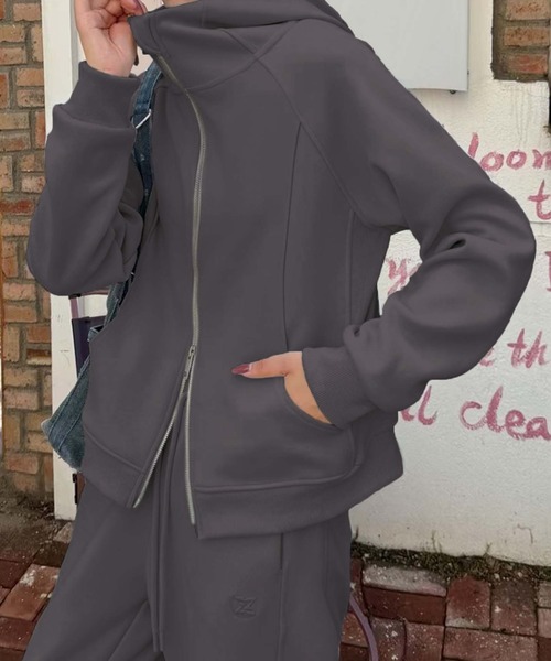 どんな季節にも活躍する、シンプルながら洗練されたデザインのハイネックジップアップフーディー。立体的なカッティングと高めのネックラインが、冷たい風を遮りつつスタイリッシュな印象を与えます。柔らかな素材感で、肌触りが良く、一日中快適に過ごせます。