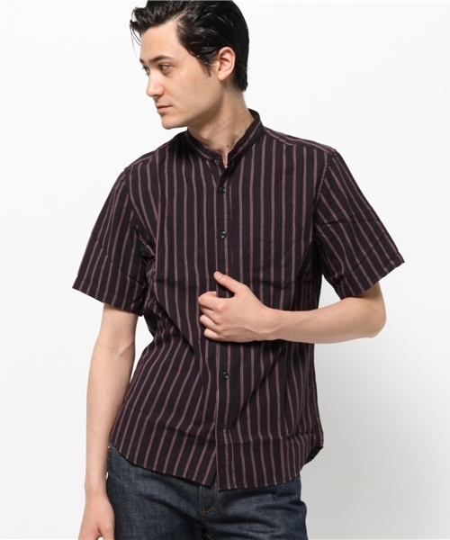 【Ciaopanic】 レジメンバンドカラーS/Sアイビーな印象を与えるレジメンタル柄をハンドカラーで仕上げました。ベーシックなボックスシルエットなので、きれいめなパンツにもラフなショーツにも合わせやすくなっています。着こなしにモードなひねりを加えたいときに活用して!!