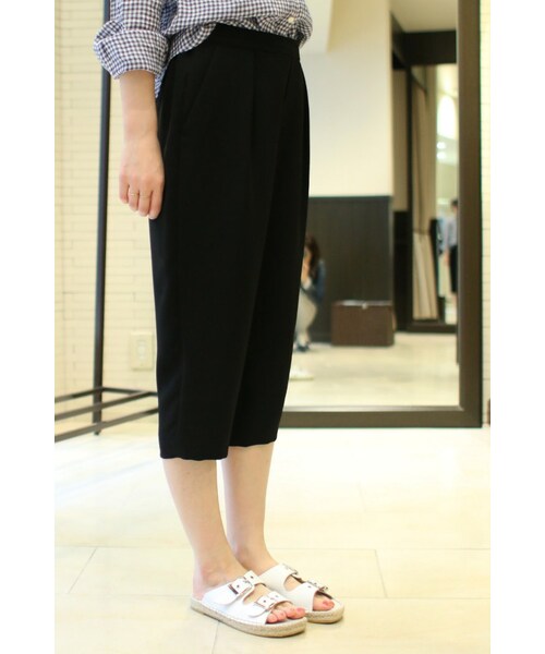 ◆◆Spick & Span2015 S/S◆◆落ち感のある滑らかな上品素材とクロップド丈が抜け感をプラスしてくれるイージーパンツ。足首が覗くクロップド丈で脚が長く綺麗に見える嬉しい効果も。ヒールやウェッジソールのサンダルと合わせるのももちろん、フラットシューズとの組み合わせが今年らしくておススメ。*お客様のPCモニターによって、画像の色が実物と異なって見える場合がございます。モデルサイズ:身長:166cm バスト:80cm ウェスト:60cm ヒップ:85cm 着用サイズ:36