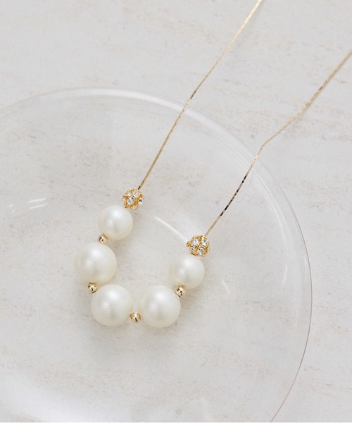 華やかデザインが顔まわりにいっそう明るさをプラス!【デザイン・シルエット】 ・大粒のパールビーズときらめくロンデルをフロントに並べた、ラグジュアリーなチェーンネックレス。 ・細身のチェーンで女性らしさをアップ。 【カラー】 ・ゴールド、シルバーの2色展開。 【スタイリングポイント】 ・きれいめなシャツ、ニットの着こなしはもちろん、普段のボーダーTシャツ等に合わせてもOK。 ・オンオフ兼用可能。 ※撮影時の光、お使いのモニター環境によって色の見え方が違う場合がございます。