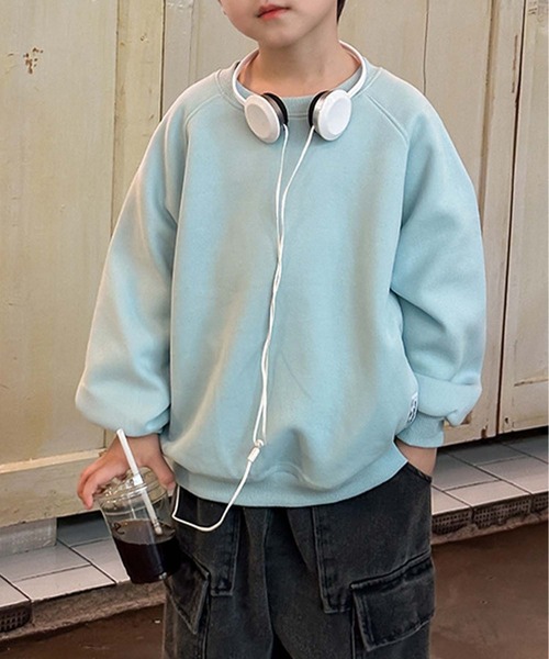 爽やかで清潔感のあるライトブルーゆったりとしたオーバーサイズ風のデザインリラックス感カジュアルで動きやすいグランスリーブが肩の動きをスムーズに全体にスポーティーな印象