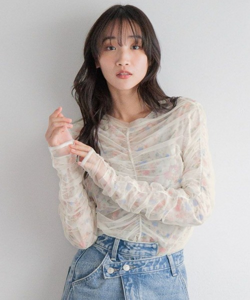 ■デザイン■ ギャザーをたっぷりよせたチュールのトップスとインナーがセットになったアイテム。 単体でも使いやすく、様々な着こなしが叶います。 ■スタイリング■ シンプルにデニムパンツと合わせたり、ワイドパンツなどと合わせたマニッシュなスタイリングがおすすめです。 コンパクトなシルエットなので、ボリュームのあるパンツともバランスよく着ていただけます。