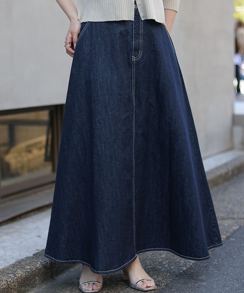 【ステッチがアクセントの着回し抜群スカート】 上部からきれいに広がるフレアデザインスカートが登場! 女性らしいシルエットですが、デニム生地でカジュアルにも着ていただけるアイテムです バックがゴム仕様になっている+ベルトループ付きで、低身長の方にも履きやすいスカートになっています 【商品ポイント】 ・シルエットが綺麗なフレアデザイン ・ウエストバック部分ゴム仕様 ・デニム素材で合わせやすい ---------------------------------------------------- ■商品特徴 洗濯方法:洗濯機洗い可(弱) 裏地:なし 透け感:なし 伸縮性:なし 光沢感:なし 生地の厚さ:普通 ---------------------------------------------------- ■素材 本体: 綿100% ---------------------------------------------------- ※着用、お取り扱いの際は、商品についている品質表示とアテンションタグを必ずご確認下さい。 ※商品タグに記載されている商品名がWEBでの表記名と異なる場合があります。 ※実際の商品と仕様、加工、サイズが若干異なる場合がございます。 ※照明の関係により、実際よりもやや明るく見える場合がございます。 またパソコンなどの環境により、若干製品と画像のカラーが異なる場合もございます。予めご了承くださいませ。 【お気に入り登録】してお得な情報をCHECK!! ・「商品のお気に入り登録」で再入荷通知や、ラストの通知、セール通知も受け取ることができます。 ・「ブランドのお気に入り登録」で新商品や再入荷など、お得な情報を受け取ることができます。