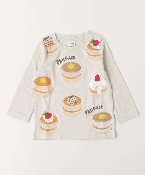 たくさんの美味しそうなパンケーキのロングTシャツです。ふっくらパンケーキがめくれます。裾にはパンケーキポケット付きです80/90/95cmは脱ぎ着しやすいよう、肩にスナップボタンがついています。100cmからはスナップボタンがついていない仕様になります。CHEEK ROOM チークルーム チークルームは知育玩具のエッセンスを取り入れたブランドです。 みて、さわって、かんがえて、 知識の根源となる興味を刺激するような服作りに力を入れています。