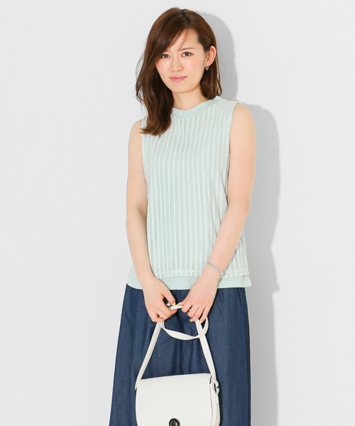 透け感のあるシアーストライプが大人の女性らしさを演出するタンクトップです。今シーズンらしいプチハイネックデザインで、スッキリ感のある着こなしを叶えます。裾部分のレイヤードでこなれたスタイリングに仕上がりますよ。 ※透け感あり ※この製品は色の特性上、直射日光や蛍光灯等に長時間当てますと変色することがありますのでご注意ください。また、洗濯の際に多少の縮が生じる恐れがありますのでご了承ください。 その他お取り扱いに関しましては、商品に付属の下げ札をご確認ください。