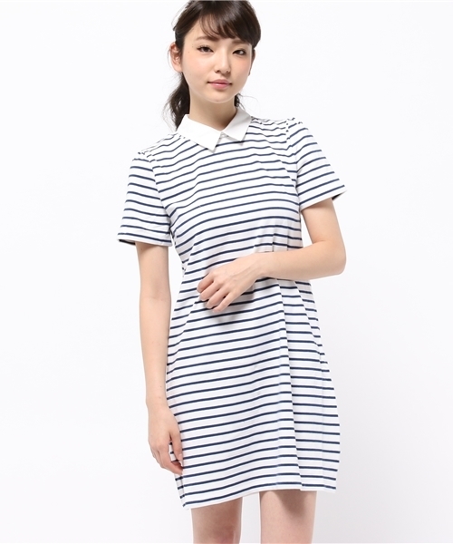 トレンドの衿が付いた。ボーダーサックワンピース。カジュアルなボーダー柄にほんのりパフスリーブがガーリーテイストのあるアイテム。一枚でサラっと着たいシンプルコーデがぴったり。3色展開でのご用意です。