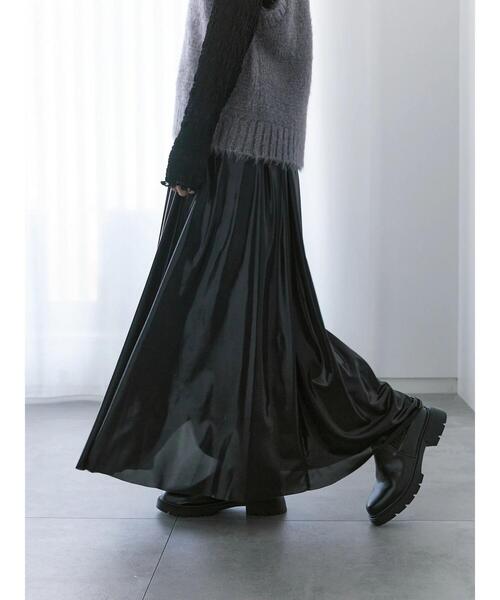 シャイニーな光沢感がスタイリングを華やかに演出するフレアスカート。 豊かに広がるシルエットで、女性らしさもより一層引き立たせてくれます。 ウエストは総ゴム仕様になっており、安心感のある穿き心地なのも◎ コーディネートの主役にもなるスタイリッシュなアイテムです。 ※商品画像は、撮影環境やお客様のご利用のPC・スマートフォンのモニター環境などにより実物と色味に差異がある場合がございます。 【その他採寸】 F ウエスト:[ゴム仕様]64cm