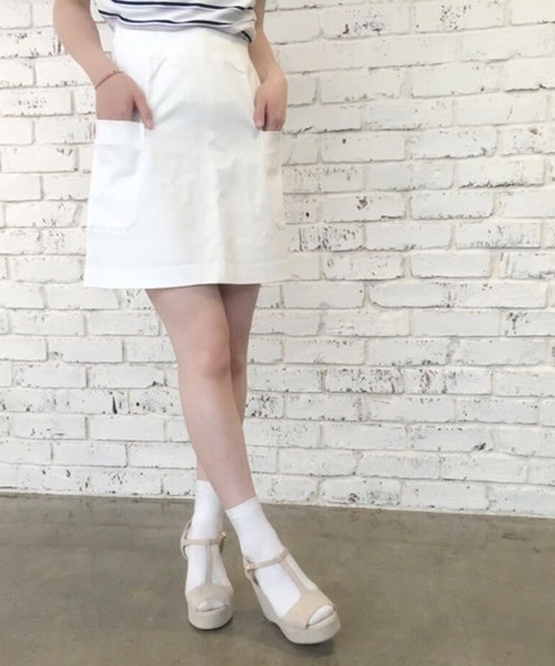 who's who Chico(フーズフーチコ) 即完売したカーキ再入荷☆ 今季トレンドのデニム生地のスカートは、くせの無いデザインで様々なコーディネートに合わせられ、オールシーズン使える優秀アイテムです。サイドにあしらわれた大き目のポケットが、全体をミニマルな印象に仕上げてくれます。裾に向かって程よく広がるシルエットで脚もすっきり見せてくれます。