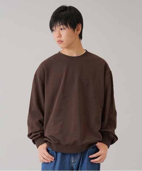 身生地と同系色のロゴが胸に刺繍されたシンプルに仕上げた裏毛のトレーナーです。 どんなスタイルにも使える、今までにありそうでなかったシンプルなデザインとなっています。幅広く使えて一枚あると便利なオススメの一着◎ シルエットは、適度にゆとりのあるサイズ感です。 【モデル】 身長173cm 着用サイズ:L(170cm) ※モデル着用の商品は、こちらのページの商品以外は参考イメージとなっております。 【透け感】なし【伸縮性】あり【裏地】なし【ポケット】なし