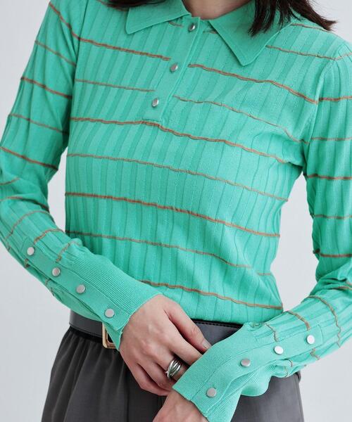 Design Point透け感のあるボーダーのポロニット。カジュアルながらも上品な印象を与える一枚です。シンプルなボーダーに鮮やかなラインがアクセントとなっており、着るだけで華やかさを演出します。Styling Pointフレアスカートやデニムと合わせてデイリーコーデにぴったり。シーズンを問わず活躍し、様々なシーンでの着こなしが楽しめます。重ね着にも対応でき、レイヤリングに最適です。Fabric Point軽く柔らかな素材が心地よい着心地を提供。透け感があり、夏場でも涼しく着られます。デイリーユースに最適な一着で、リラックスしたスタイルを実現します。*****************************\\気になるアイテムはお気に入り登録がおすすめ//気になるアイテムのページにある「♥マーク」をクリックして簡単に追加できます。登録すると、再入荷通知やお値下げ情報をメルマガにてお知らせ!マイページにてお気に入り一覧もチェックできます。*****************************※照明の関係により、実際よりも色味が違って見える場合があります。また、パソコン・スマートフォンなどの環境により、若干製品と画像のカラーが異なる場合もございます。店舗へのお問い合わせ商品番号:523-12401●製品寸法:38(M):着丈50cm B80cm 袖丈58cm 肩幅33cm備考: