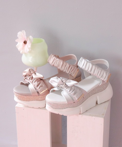 ━━━━━━━━━━2026 Spring & Summer━━━━━━━━━━ 【商品説明】 8cm盛れる。キラキラ主役の甘スポサンダル足元から一気に盛れる。キラッキラのグリッターソールが主役の厚底スポーツサンダル。 トレンドのリボン×シャーリングをサテン素材で仕上げ、スポサンなのにしっかりフェミニン。リボンは取り外し可能な2WAY仕様で、甘めにもシンプルにも履き分けできます。 厚底で+8cmスタイルアップ。少しヒールアップした設計で、脚がすらっと見えるのも嬉しいポイント。ソール全体に厚みがあるので、見た目ほど傾斜を感じにくく、安定感も◎ デニムでカジュアルに、ワンピでガーリーに。コーデを一気に“今っぽく”してくれる主役級サンダルです。 同じグリッターソールのリボン&チュールデザインも展開中「No.8990007」 ──────────【✨履きやすさのPoint】・2か所のベルトでサイズ調節可能・インソールクッションでふかふか・厚底設計でヒール高を感じにくい ──────────【⚙Spec|素材&サイズ感】・裏地:合成皮革・伸縮性:なし・柔らかさ:★★★☆☆(ふつう)・サイズ感:いつものサイズでちょうどいい・片足の重さ:約 400g ──────────【🗣Staff Review】 スタッフ:Mizuki.A 着用サイズ:LL(普段通り)足型:ワイズE/やや広め コメント: いつものサイズでジャストでした。カカトもつま先もサンダルからあふれず、ちゃんと収まります。つま先も足首も面ファスナーで調節できるのがうれしいです!トゥスプリングが適度にあるのでとても歩きやすく、傾斜はほぼ無いので安定感もばっちりでした。 ──────────【🏷Brand|byあしながおじさん】カジュアルの楽しさを、もっとライトに。**“ちょうど良い今っぽさ”**をお届けするブランドです。Instagram:ashinagaojisan_gram ──────────【🔎 安心してお買い物いただくために】 【❗Attention|ご購入前にご確認ください】・掲載画像はサンプルのため、仕様が異なる場合があります・光の加減やご覧いただく環境により、色味が異なる場合があります・雨や汗による色落ち、衣服への色移りにご注意ください・包装紙・箱・タグに破損があっても、商品本体に不良がない場合はそのまま出荷させていただいております ──────────【📦返品・交換について】・ご試着後の返品・交換はお受けできません・商品に不備がある場合は、注文履歴からお問い合わせをお願いいたします ──────────【♥お気に入り登録でお得】完売→再入荷通知在庫わずか通知 “逃したくない!”を、ひと押しで回避✨