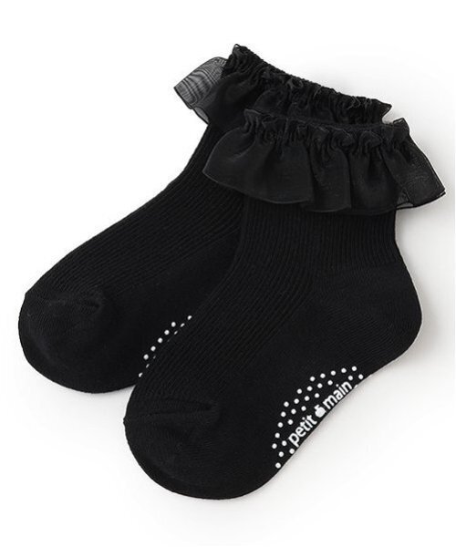 光沢感のあるシースルーフリルで華やかに仕上げたソックスです。 発表会や卒業式などのフォーマルシーンから普段使いまで活躍します。 足裏にはすべり止めプリントをほどこしているのもうれしいポイント。 パンプスやローファーに合わせれば、上品なコーディネートが完成します。