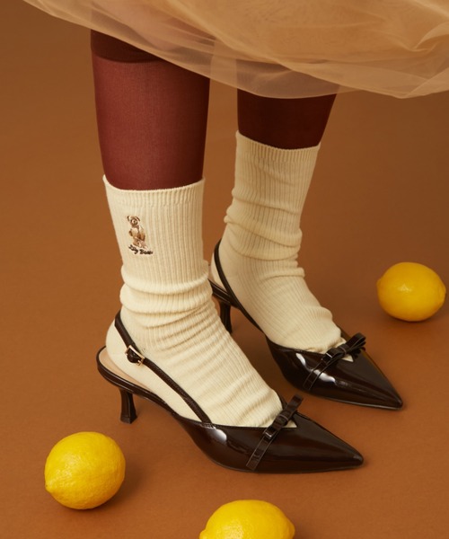 【ZOZOTOWN限定デザイン!Lily Bearソックス】 ZOZOTOWNのために特別に描き起こされたLily Bearデザインのソックスが登場。 Lily Bearがお気に入りのぬいぐるみを抱えた可愛らしい刺繍がポイントです。 素材には、シーズンレスで活躍するコットンを使用。 柔らかい履き心地で快適さを追求しました。 リブ編みは締め付け感が少なく、ふんわりと足にフィット。 履き口には適度なテンションを加え、ピタッと止まりつつもルーズな着こなしも楽しめる仕様に仕上げています。 【Point】 少し長めに仕上げたのがポイント! クシュっとルーズに履くことで、着こなしにぐっと今っぽさをプラスしてくれます。