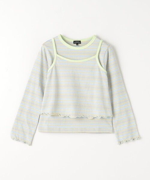 お得なセットアイテム ■デザイン レイヤードして着るとオシャレ感がUPするセットアイテム。 マルチボーダーのロングスリーブトップスと、同素材のキャミソールです。 袖や裾はメロウをきかせ、ポイントに。 セットでレイヤードスタイルはもちろん、それぞれ単品使いも可能。 オシャレな色合いで、暗くなりがちな冬のコーディネートを華やかにみせてくれそう。 ■素材 洗濯機洗いもでき、普段使いしやすい。 ■コーディネート 様々なボトムと相性良く着用いただけます。 ・シリーズでキッズサイズのご用意もございます。 対象品番:38121982010 ============================ 裏地:なし 伸縮:ややあり 光沢感:なし ケア方法:洗濯機洗い可 ============================ 【注意事項】 ※商品を使用前に、タグ等に記載されている「取り扱い上の注意書き」、「洗濯表示」を必ずご確認ください。 ※商品画像は、光の当たり具合やパソコンなどの閲覧環境により、実際の色味と異なって見える場合がございます。あらかじめご了承ください。 ※商品の色味の目安は、商品単体の画像をご参照ください。 ・160cmはWEB限定サイズです。 店舗へお問い合わせの際は、全国のgreen label relaxing各店舗まで下記の品名/品番をお申し付けください。 品名:◆TJ マルチBDR キャミ+PO SET 品番:38621982010
