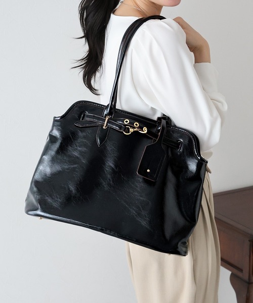 Y2Kなムードを演出するビッグトートバッグ◦POINTフロントのベルトデザインが目を惹くバッグ。光沢感のあるヴィンテージライクな合皮を使用し、Y2Kスタイルや90sの雰囲気を醸し出すトレンド感溢れるデザイン。マチがたっぷりある大きめのサイズ感のバッグなのでデイリーに使いやすく、スマートフォン、財布やハンカチ、ペットボトルなど、お出掛けに必要なアイテムも入ります。500mlのペットボトルやタブレット、お弁当箱が入る広めのマチでA4収納可能なので通勤通学にも◎ファスナー付きの内ポケットがあるのでリップなどのちょっとした小物を入れて頂くのに便利です。◦STYLINGベルトデザインが幅広いアイテムと相性が良く、ストリートっぽい韓国風コーデやシンプルコーデにも◎いつものコーディネートに合わせるだけで、一気にトレンドライクな印象に◎一つ持っているとオールシーズン活躍すること間違いなし。A4サイズも入るのでお仕事用のバッグとしてもおすすめです。◦DETAIL内側 ファスナーポケット×1調節可能なベルトデザインタグ風チャーム付き底鋲有り[ 商品のお気に入り登録 ]完売カラーの再入荷通知や、値下げのお知らせ、ラスト1点の通知などが受け取ることができます。随時再入荷していますので、お気に入り登録して頂くと再入荷情報がGET出来ます。[ ブランドのお気に入り登録 ]新商品の発売や再入荷、タイムセールやクーポン発行のお知らせなどBLUEEASTのお得な情報を受け取ることができます。ぜひご登録ください♪※撮影環境により、モデル着用画像は実際の商品と色味が異なって見える場合がございます。また、PCやスマートフォンの環境により画面上と実物では多少色が異なって見える場合がございます。トルソー画像が実際の商品に一番近いお色となりますのでご確認ください。※フェイクレザー(合皮)の商品には、染料等特有のにおいがある場合がございます。気になられる場合は、お手数ではございますが、風通しの良い直射日光の当たらない場所にてしばらく平置きで陰干しをお願い致します。