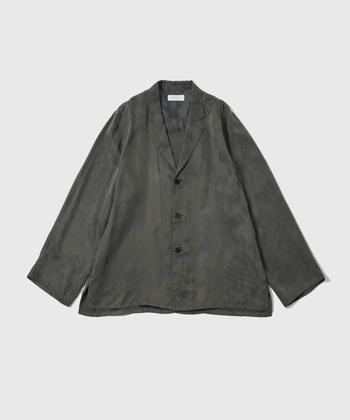 とろみのある上品な落ち感が特徴のジャケット。シャツのような感覚でも着用でき、抜け感のあるリラックスした印象の1着。【素材】なめらかでさらりとした感触が心地よく、独特のトロみある落ち感を楽しんでいただけるキュプラ/レーヨン素材です。フィブリル化し微起毛に仕上げており、落ち着いた印象に仕上げています。吸湿性があり帯電性がない為、肌に張り付きずらく、ゆったりとしたオーバーサイジングの着こなしを楽しんでいただけます。※スミクロ(05)はWEB限定カラーとなります。 【デザイン・シルエット】デザインを抑えたシンプルなシャツジャケット。テーラードカラーの様に構築的に作られた胸元と、サラッとしたシャツの雰囲気を掛け合わせた1着です。同素材のパンツ(GMS05170)とセットアップで着こなしていただくとリラックスした大人の遊び心あるスタイリングに。ウエストインをすると落ち感を楽しんでいただけるオープンカラーシャツになります。嵩張らないので、Tシャツ1枚で過ごす時期に軽い羽織としても持っておきたい1着です。同素材のパンツはこちら【モデル情報】男性:Height:187cm Bust:82cm Waist:69cm Hip:87cm Lサイズ着用女性:Height:163cm Bust:77cm Waist:60.5cm Hip:86cm Lサイズ着用【推奨サイズ】サイズM:身長~175cmサイズL:身長176cm~※標準体型を基にした目安になります。--------------------------裏地:なし光沢感:あり透け感:なしポケット:なし伸縮性:なし生地の厚さ:普通--------------------------