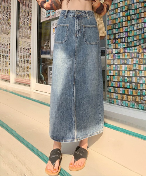 長めの丈が大人可愛いシルエットにこだわったデニムスカート。脚長効果のあるハイウエストと広がり過ぎないほのかなAラインでスタイル良く着こなせます。前スリット入りで動きやすいです。フロントとバックに計4つのパッチポケット付き。小さめのポケットがシンプルなデザインのアクセントになっています。ミモレ丈で様々なシューズと合わせやすいです。デニム特有のカジュアルなスタイルは日常からお出かけまで幅広く活躍します。定番のインディゴブルーとフェミニンなピンクの2色展開。 • カラー:定番のインディゴブルー、甘さをプラスするフェミニンピンク • デザイン:フロントスリットで動きやすく、抜け感をプラス • シルエット:ミモレ丈で上品な印象、脚を美しく見せる絶妙なバランス • 素材:しっかりとしたデニム素材で耐久性抜群 • 特徴:フロント&バックポケット付きで、実用性も◎ 普段使いにはスニーカーやTシャツと合わせてカジュアルに、ヒールやブラウスと組み合わせてエレガントに仕上げるのもおすすめです。