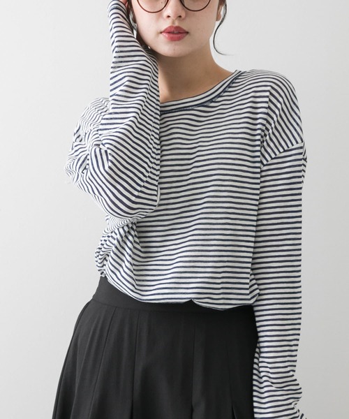 首周りの抜け感が今年らしいルーズトップ! 〇スッキリしたネックデザイン 〇程よい透け感で一枚でもインナーにも 〇ゆったりシルエットで体のラインを拾わない styling ゆったりめのシルエットに広めのネックデザインが今年らしい一枚!抜け感も演出でき、ボーダーが目を惹き一枚でもインナーとしても最適◎着回し抜群アイテム要必見です◎ 【2025 Spring/Summer】【25SS】 ※商品画像は、光の当たり具合やパソコンなどの閲覧環境により、実際の色味と異なって見える場合がございます。予めご了承ください。 ※商品の色味の目安は、商品単体の画像をご参照ください。 ▼お気に入り登録のおすすめ▼ お気に入り登録商品は、マイページにて現在の価格情報や在庫状況の確認が可能です。 お買い物リストの管理に是非ご利用下さい。 素材感 透け感 : ややあり 伸縮性 : あり 裏地 : なし 光沢 : なし ポケット : なし one
