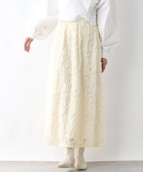 広がりすぎないシルエットが特徴のレーススカート 【デザイン】 今年もトレンドの表面感のあるレースを使用したスカートです。ウエストは総ゴム仕様で調節ができる紐が付いています。裏地もしっかり付いているので安心感も◎ 【スタイリング】 ・スウェットやフーディーと合わせた大人カジュアルコーデがおすすめです。 ・少し綺麗めに見せたい方はジャケット合わせも◎ --------------------------------------------------- 【気になる商品はお気に入り登録がおすすめ!】 ・在庫残りわずか ・再入荷 ・セールの情報 などの通知を受け取ることができます。 気になる商品は♡をクリックして、 「お気に入り登録」しましょう! 【ショップ・ブランドのお気に入り登録も!】 新商品や再入荷、セール、クーポンの配布など、 いち早くお得な情報を受け取ることができます。 ---------------------------------------------------