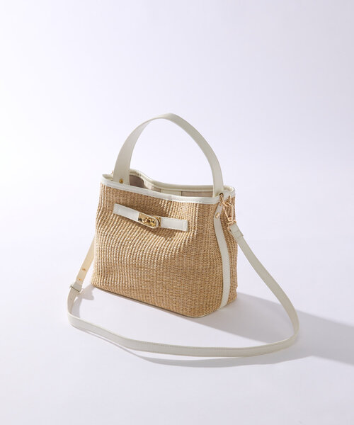 いつものコーデにプラスするだけで華やかなお洒落を楽しめるかごバッグ商品ポイント・バイカラーの配色とペーパーの涼し気な素材感がおしゃれなハンドバッグ・ひねり金具がついて高級感をプラス・女性らしい小ぶりなサイズ感ながら、内側は広く使える無駄の無い収納スペースに、 長財布もしっかり収納可能で使い勝手抜群◎・付属のショルダーを繋げばショルダーバッグとして、斜め掛けでの使用もOK!素材合成皮革ペーパーメッシュ骨格タイプ骨格ストレート:全体的に立体型で筋肉質。ひざ下はすらっと細め。ボディラインにメリハリがある。骨格ウェーブ:上半身が薄く、華奢。緩やかな曲線のボディライン。下半身に重心があり女性らしい体型。骨格ナチュラル:筋肉や脂肪があまり感じられない体型。腰の位置が高く骨や関節が目立ちやすい。--------------------------------------------------------------------------------【注意点】※画像の商品は光の照射や角度、お使いのモニター環境により、実物と色味が異なる場合がございます。※入荷状況により、お届け予定が前後する場合があります。※工場の生産の都合上、納期が変更になる場合がございます。検品や輸送の関係で、発送日が前後しますのでご了承ください。 また、入荷状況により、お客様への発送が店頭販売より遅れる場合もございます。※追加生産商品は、一部の店舗、通販で販売中の場合がございます。予めご了承下さい。※サンプルでの撮影、計測をしております。商品の仕様が一部変更になる場合がございます。※撮影サンプル品はブランドタグがついておりません。製品にはタグがつきますので、製品の表に縫い糸が見える場合がございます。--------------------------------------------------------------------------------【お買い物をもっと便利に楽しく♪】『♡』をクリックでお気に入り登録✓「商品のお気に入り登録」で・・・ ラスト1点や再入荷の通知が届きます。登録して頂いた商品だけが対象となる、あなただけのタイムセールが開催されることも!✓「ブランドのお気に入り登録」で・・・ 新商品や再入荷など、いち早くブランドのお得な情報を受け取ることができますので、ご登録をおすすめします!--------------------------------------------------------------------------------