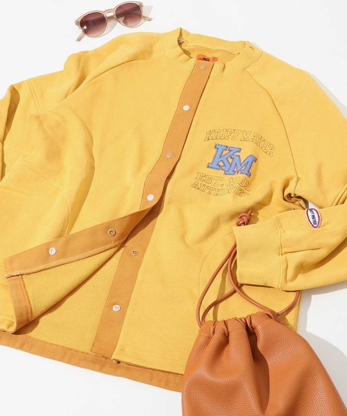 《KRIFF MAYER 春アイテム「のび~る裏毛カーディガン」》 柔軟性抜群のオリジナルストレッチ裏毛を使用したスウェットカーディガンです。 前のボタンはスナップボタンを使用しているので、 手軽に脱ぎ着ができちゃいます♪ 肩の裏側には生地を張っているので、 ハンガーにかけても伸びにくく、型くずれしにくくなっています。 前立ての異素材使いと、別の生地を貼り付けた大きめの胸の刺繍がポイントです。 同コンセプトのメンズアイテム(品番:2437802)も展開しておりますので、ペアルックなどもお楽しみいただけます! ------------------------- シルエット:スタンダード 生地の厚さ:中肉 透け感:なし 伸縮性:あり ケア方法:洗濯機洗い可 ------------------------- ●『KRIFF MAYER』(クリフメイヤー) KRIFF MAYERは、日本の自然をイメージした伝統色と、シンプルで遊び心あるデザインで、型崩れしにくく耐久性のある高品質な服を、メンズ・レディース・キッズ、さらにペット用まで幅広く展開。家族みんなの毎日に温かさと楽しさをお届けします。