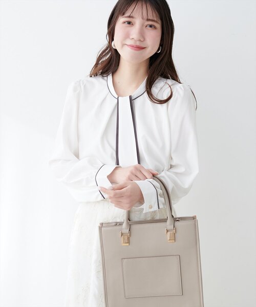 【2025SS natural couture】気分に合わせてスタイルチェンジできるブラウス■Design 大人気のお上品ボウタイブラウスにマルチWAYタイプが登場。胸元のボウタイを外して、シルバーアクセントのスタイルやチャームとボウタイを重ねてつけていただくと華やかな印象に。気分に合わせてお好みのスタイルをお楽しみいただけます。衿元と袖口の配色でシンプルになり過ぎないのも嬉しいポイント◎オフィスにもお出かけにもシーン問わず使える万能アイテムです。■Stylingブラウスがさらりとしている分、ボトムは厚みのあるアイテムを合わせて素材感にメリハリを付けるのがおすすめです。一枚で上品なアイテムなので、スカートスタイルはもちろん、デニムなどを合わせてカジュアルダウンするスタイルも◎カーディガンを重ねても華やかなスタイリングに◎。■Fabricさらっとした薄手のブラウス地で上からジャケットやカーディガンを羽織っても、もたつかず着用いただけます。=========================お手入れ方法:手洗い透け感:アイボリーややあり裏地:なし伸縮性:なし光沢感:なし生地感:さらりとした生地感=========================※着用、お取り扱いの際は、商品に付いている品質表示とアテンションタグを必ずご確認ください。【お気に入り登録でお得な情報がいっぱい】・「商品のお気に入り登録」で再入荷通知や、ラスト1点の通知、セール通知をいち早く受け取ることができます。・「ブランドのお気に入り登録」で新商品や再入荷など、お得な情報を受け取ることができます!※店舗の入荷時期は商品によって異なります。店頭の在庫状況につきましては各店舗にてお問い合わせください。※撮影時の光の関係で、画面上の画像と実際のお色とでは若干の色差が生じる可能性がございます。また、ご覧いただいているモニター画面や、お使いのブラウザによっても、お色の違いがございますことをあらかじめご了承くださいませ。202501102025SS_natu25SS