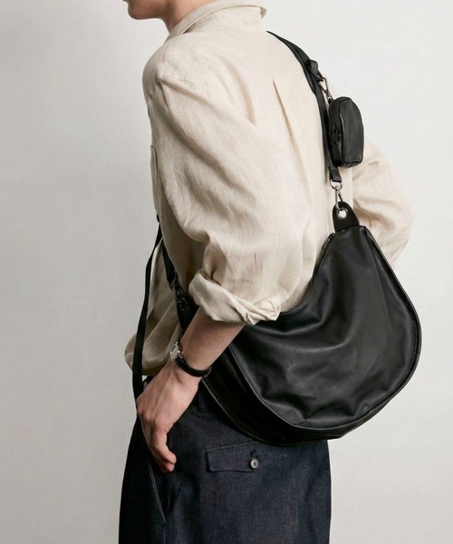 【パスケース付きPUハーフムーンバッグ】 ◆POINT◇ 今季トレンドの大きめサイズのワンショルダーバッグ。 シンプルながらも三日月シルエットがこなれ感を演出します。開け口もファスナーで安心できショルダー紐も長さ調整可能。 おしゃれなデザインと実用性を兼ね備えたショルダーバッグ。 シンプルで都会的な雰囲気を演出します。 カジュアルはもちろん様々なコーディネイトに合わせやすいデザインで男女兼用でお使いいただけます。 ペットボトルやポーチなどはもちろん、ノートPCやタブレット、A4サイズの書類も横向きに収納可能。 シンプルなデザインとシャープすぎないディティール。 古着ライクなコーデやストリートコーデにもピッタリ。 通勤や通学にもぴったりです◎ 【色展開】ブラック ■ポイント ・ブラック ・ストリート ・ショルダーバッグ ・ミニポーチ付き ・夏 ・春服 ・夏服 ・韓国ファッション ・A4収納可 ・スポーツテイスト ・Y2K ・フェイクレザー ―――――― ■収納について ・A4対応:〇 ・長財布:〇 ・二つ折り財布:〇 ・キーケース:〇 ・ペットボトル横向き(500ml):〇 ・ペットボトル縦向き(500ml):〇 ―――――― ◆COODINATE◇ スタイリングの幅を狭めずマルチにお持ちいただけます。 ストリートスタイルはもちろん、ノームコアやキレイめコーデのアクセントにもお使いいただけるので、 通勤・通学コーデにも取り入れていただけます。 ※着用身長によって画像イメージと異なる場合があります。 ※撮影環境により、実際のカラーと多少異なる場合がございます。 《 お知らせ 》 ▼商品のお気に入り登録 お気に入りアイテムの値下げ・再入荷・在庫1点などの通知を受け取ることができます。 ▼ブランドのお気に入り登録新商品や再入荷、セール、クーポン配布などお得な情報を受け取ることができます。 是非、お気に入り登録してみてください!