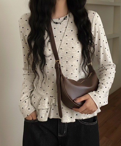 ◆POINT◇ 今季トレンドのミニバッグ。 肌なじみの良いキメ細やかなフェイクレザーを使用しており高級感のあるバッグ◎ 丸みのあるフォルムで柔らかな印象を与えてくれます。 開け口はファスナーなので安心! さらに内ポケットもありちょっとした小物を仕分けすることができます。 肩掛けしてもゆとりがあるためアウターを着用している時期でも しっかり肩にフィットするため持ちやすいです! マチありなのでしっかり収容できます! 大きすぎず小さすぎず、おでかけに最適なサイズです。 【3色展開】ブラウン/ブラック/キャメル ー―――――― ■収納について ・A4対応:× ・長財布:〇 ・二つ折り財布:〇 ・キーケース:〇 ・ペットボトル横向き(500ml):〇 ・ペットボトル縦向き(500ml):× ―――――― ◆COODINATE◇ ガーリーコーデからカジュアルコーデまで幅広く取り入れられます。 バレエコアやフレンチガーリーさんにもピッタリ。 Y2Kやストリートコーデがお好きな方はブラックがおすすめ。 ベーシックなデザインなので普段使いにどんなコーデにも取り入れていただけます。 ◆スタッフ着用レビュー◇ 【スタッフA:163cm】 ハーフムーンの丸みのあるフォルムが女性らしく、持つだけでコーデが柔らかい印象になります。 ワンハンドルで肩掛けすると上品見えして、きれいめコーデとの相性も抜群◎ 見た目はコンパクトですが、財布・スマホ・ポーチなど必要なものはしっかり収納できます。 軽くて持ちやすく、デイリー使いにぴったりです。 【スタッフB:156cm】 ころんとしたサイズ感が可愛く、小柄でもバランスよく持てました! ショルダーで肩掛けすると程よく抜け感が出て、カジュアルコーデにも合わせやすいです。 シンプルなデザインなので季節問わず使えそう◎ お出かけやデートにも使いやすい万能バッグだと思います。 ※着用身長によって画像イメージと異なる場合があります。 ※撮影環境により、実際のカラーと多少異なる場合がございます。 ※合成皮革製品の特性上、新品時には素材特有の匂いが感じられる場合がございます。気になる場合は、風通しの良い場所で数日間陰干ししていただくと徐々に軽減されます。 ・レザー ・バッグレディース ・手持ち ・ハンドル ・かばん ・ワンショルダー ・ハーフムーン ・ミニバッグ ・太ベルト ・コンパクト ・斜め掛け ・バッグレディース ・調整可能 ・春物 ・夏物 ・秋物 ・冬物 《 お知らせ 》 ▼商品のお気に入り登録 お気に入りアイテムの値下げ・再入荷・在庫1点などの通知を受け取ることができます。 ▼ブランドのお気に入り登録新商品や再入荷、セール、クーポン配布などお得な情報を受け取ることができます。 是非、お気に入り登録してみてください