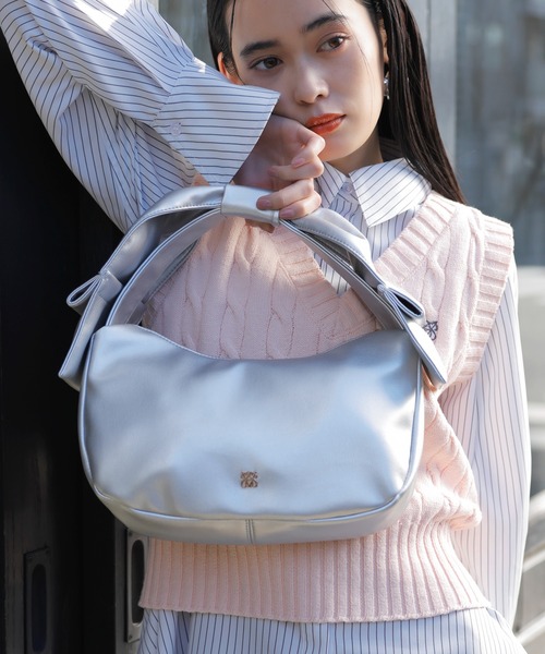 トレンドのリボンバッグ、VISらしいレディデザインに。◆2025春夏◆ 【デザイン・シルエット】 大きなリボンがコーデのポイントにぴったり! <POINT> ・口元はファスナー開閉で、左右両開きです。 ・肩掛けするとリボンが肩に添い、大人カワイイコーデが出来ます。 ※リボンの裏にスナップボタンをつけてリボンを固定できる仕様しました。 スナップボタンを外すとリボンが垂れるので、お好みで。 ・フロントのロゴ金具も高見えポイント。 ・500mlペットボトル、長財布、ポーチ、ハンドタオルが収納できます。 【素材】 ホワイト、シルバーは柔らかいゴート風の合成皮革。ブラックのみシャンタン風の細かい凹凸感がある生地です。 【カラー】 ベーシックなブラック、ホワイトに加えて、ポイントになるシルバーに計3色展開。 【おすすめのスタイリング】 カジュアルスタイリングのアクセントとして取り入れるのがおすすめです! ----------------------------- ポケット:内装1 500mlペットボトル:〇 長財布:〇 A4:× ----------------------------- ※画像の商品はサンプルです。 実際の商品と仕様、加工、サイズが若干異なる場合がございます。