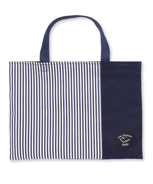 爽やかなストライプ切替のレッスンバッグ。 無地の部分にはキャンバス生地を使用。 ホワイト×ネイビーのクラシカルな配色で飽きの来ないデザイン。 B4サイズが余裕を持って入る30×40cmのサイズ。 内側には15×20cmの内ポケットもあります。 端にはさりげなくBeBeのロゴ刺しゅうが入っています。 新年度の準備に揃えておきたいアイテムです。 【 Back to school 】 通学にもおすすめのデイリーアイテム 【2025年春夏 シーズンテーマ】 -風のように- 青空に吹く 心地よい風。 そんな風のように 軽やかに背中を押してくれるファッション。 風に乗って 知らない世界を発見しに行こう。 【BeBe(べべ)】 ”LOVE MODERN” 少しおませで、生意気なヨーロピアンカジュアルの提案。 時代性・流行性をとらえ、ベーシックでもワンポイントを施した遊び心、楽しさを盛り込んでいます。 シンプルだけど、こだわりのあるオリジナリティーを重視しています。 2025年 春夏 男の子アイテム