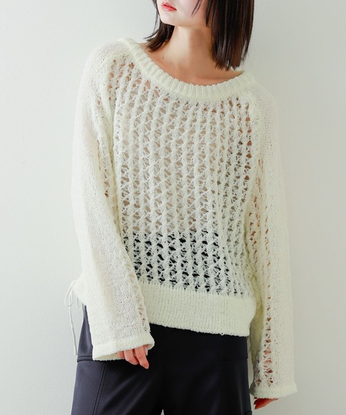 ゆるっと抜け感をプラスしてくれるメッシュセーター 〇ゆるっとサイズで抜け感をプラス 〇お洒落見え叶うメッシュデザイン 〇糸をミックスした華やぎアイテム styling ゆるっとサイズが今年らしい一枚。メッシュデザインなので中にロゴTを着せこむのもすすめです◎夏に近づくとキャミトップやタンクトップ合わせでヘルシーな肌みせスタイルもおすすめです! 【2025 Spring/Summer】【25SS】 ※この商品は、ピリングができやすい素材を使用しています。小バサミなどを使い元糸を傷つけないように取り除いてください。 ※素材や編み方の性質上、引っ掛け、引っ掛かりが起きやすい性質をもっています。お取り扱いにはご注意ください。 ※その他お取り扱いに関しましては、商品に付属のアテンションタグをご覧ください。 総重量 : 約370g ※商品画像は、光の当たり具合やパソコンなどの閲覧環境により、実際の色味と異なって見える場合がございます。予めご了承ください。 ※商品の色味の目安は、商品単体の画像をご参照ください。 ▼お気に入り登録のおすすめ▼ お気に入り登録商品は、マイページにて現在の価格情報や在庫状況の確認が可能です。 お買い物リストの管理に是非ご利用下さい。 素材感 透け感 : あり 伸縮性 : あり 裏地 : なし 光沢 : なし ポケット : なし One