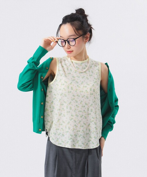 古着のようなデザインが魅力■デザイン昨年も好評だったお花柄のサーマルノースリーブが今年も登場。古着のような擦れた雰囲気をプリントで表現したひと品は、お花のカラーから色を拾った配色のバインダーもポイントです。別注で柄を作り、プリントしている素材も魅力のひとつです。■コーディネートシャツやカーディガンなどの羽織り物の下からチラッと覗かせるのもおすすめ。コーディネートにさり気なくインパクトを与えてくれます。■サイズ程よいフィット感のあるサイズ感。■素材肌触りにシャリ感があり、清涼感のある風合いが特徴。ワッフル編みをしているため、編地特有の伸縮性がありがます。■ケア方法洗濯可(詳細は商品についている品質表示ラベルをご覧ください)【BLUE】Model : H164 B72 W59 H85 Size : ONE SIZE生地の厚さ:薄手透け感:ややあり伸縮性:ややあり光沢感:なし裏地:なし【スタッフレビュー】スタッフ:吉野 多恵身長:154cmcm / 普段サイズ:S-M / 着用サイズ:ONE SIZE骨格タイプ:ウェーブサイズ感: インナー遣いにおすすめの、身体にフィットする設計。素材感: 柔らかなコットン素材。ポイント: インナー遣いとして、首元からのアクセントとしてオススメです!※アイテムサイズは商品サンプルを採寸しているため、実際の商品と多少の誤差が生じる場合がございます。※画像の商品はサンプルのため、実際の商品と「仕様」「色味」が異なる場合がございます。