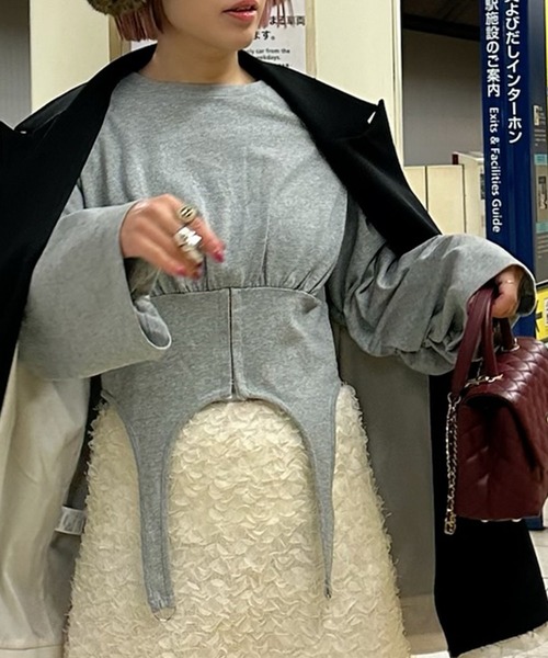 細かなデザインがかわいすぎる・・・! 着回し抜群のコルセット風ロンT ▼デザイン ・コルセット風のデザインですっきりとしたシルエットで着ていただけます ・袖口のギャザーなど細かい部分までこだわったアイテム ・裾がぴろんとしたデザインが目を惹き、コーディネートの主役としてお使いいただけます ・1枚でかわいいロンTはこれからの季節重宝すること間違いなし ・柔らかい生地感なのでアウターやカーディガンとレイヤードしてもゴワつかず着ていただけます◎ ▼コーディネート ・すっきりとしたデザインなのでボトムを選ばず着ていただけます ・膝上丈のスカートと合わせると大人っぽくまとまります◎ ・コルセット部分が着瘦せ効果抜群! ・裾ぴろんのデザインが気になる腰回りをカバーしてくれます ・足元はブーツやスニーカーと合わせるのがおすすめ♩ -------------------- 裏地:なし 透け感:すこしあり 厚さ:薄め 伸縮性:あり -------------------- ※可能な限り実物に近いカラーにて掲載しておりますが、 ご使用のパソコンおよび携帯電話の閲覧環境によっては、 実際の色味と異なって見える場合がございます。予めご了承ください。 ※詳しいお手入れ方法は商品タグをご参照ください。 【最新情報はinstagramをチェック!】 ★Alley Tokyo 公式instagram @alleytokyo ★Alley Tokyo Director @hanai_chi7997 【お買いものにおすすめの便利機能!】 ★商品のお気に入り登録 完売カラーの再入荷の時や、ラスト1点の時、セールになった時にお知らせします。 ★ブランドのお気に入り登録 商品や再入荷、セール情報など、いち早くブランドのお得な情報を受け取ることができます。 ぜひご活用ください!