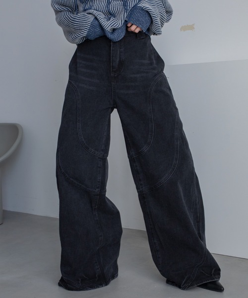 - 2025 VACANCY SPRING COLLECTION - ウェーブラインと裾のウォッシュ加工が珍しいデニムパンツ ◆FABRIC 全体的にゆるっとしたルーズ感のあるシルエットが魅力のデニム。 個性差を楽しんでいただけるウォッシュ加工感。 シーズン長く着れる程よい生地の厚さと丈夫な硬さは、 経年変化によってより美しく味も生まれます。 フロントのダブルウェーブラインは、立体感をあたえデザインの存在感を強調。 馴染みやすいワイドシルエットに人と差がつくデザインを加えました。 更に後ろポケットには、バイカラーの加工感を施しヒップラインをカバーしてくれます◎ カラー展開は、 1枚はもっておきたいカジュアルな爽やかなBLUE 徐々に色落ち加工を自身で楽しめるシックなBLACKの2色展開です。 使っていくうちに徐々に身体に馴染んでいくデニムパンツは、ディリーユースに絶好な1本です。 ◆STYLE コンパクトなリブニットやTシャツ、キャミやタンクなど 女性らしいフィット感のあるアイテム合わせが今季のオススメ! ショート丈のアイテムと合わせると足長効果も◎ 長めのレングスにしているので、 トレンドの厚底のハイテクスニーカーやサンダルとの相性も抜群。 スタイリングの外しで女性らしいヒール合わせもオススメです。 ・・・・・・・・・・・・・・・・・・・・ 透け感:なし 裏地:なし 伸縮性:なし 光沢感:なし 生地の厚さ:普通 ・・・・・・・・・・・・・・・・・・・・ 【お買い物をお楽しみいただく為に】 ▼お気に入り登録をオススメ致します▼ ♡をクリックして下さい。 ・《商品のお気に入り登録》で再入荷通知や、ラスト1点の通知、セールの際の通知も受け取ることができます。 ・《ブランドのお気に入り登録》で新作商品や再入荷など、お得な情報を受け取ることができます! 【ATTENTION】 ※画像の商品はサンプルです。 実際の商品と色味、仕様、加工、サイズ、素材等が若干異なる場合がございます。 ※撮影場所やお使いのモニター環境により若干お色味が異なる場合がございます。 ※製品によっては染料の特性上、湿った状態や汗をかいた状態での長時間の放置、または摩擦により、他のものへ色移りする恐れがありますので、着用時にはご注意下さい。 ※お洗濯については商品の洗濯タグ表記をご確認ください。 ※風通しがよく、湿気の少ない日の当たらない場所で保管して下さい。 ※また製品加工上、お手元に届く際に匂いが生じる場合がありますが、 ご使用を続けていく事により匂いは軽減されます。