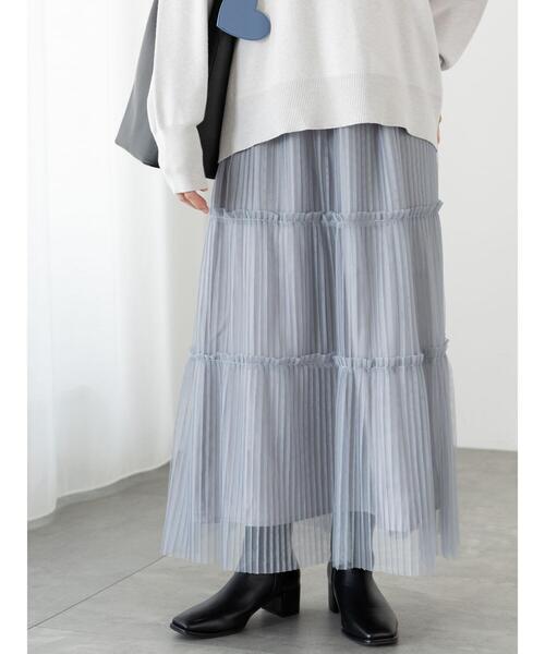 細やかなプリーツとティアードデザインで装いを華やかに演出するスカート。旬なチュールにプリーツを施してふんわりと重ね、女性らしさも一層高まる愛らしい印象に。ウエストはゴムギャザー仕様で安心感のある穿き心地です。あえてカジュアルなアイテムと合わせたコーディネートもおすすめ◎※商品画像は、撮影環境やお客様のご利用のPC・スマートフォンのモニター環境などにより実物と色味に差異がある場合がございます。【その他採寸】F ウエスト:[ゴム仕様]66cm