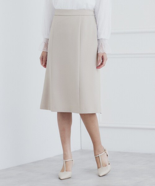 毎日の通勤やハレの日にもうれしい多機能付き素材!コードパイピングがさりげないAラインフレアスカート ※C58-42003はセットアップとして着用いただけます。 【デザイン】 ・程よいマーメイドシルエットが美しい、パネル切り替えAラインスカート。 ・切り替えのラインを入れることで縦のラインを強調し、すっきりと洗練された印象に。 ・脚捌きもよく、ひざも隠れる丈感なので、セレモニーやオフィスシーンにもオススメ。 ・ウエストの切替のサイド部分にさり気ない同色のパイピングを挟みこみアクセントを付けています。 ・ウエストのセンターバックにはゴムが入っているので、タックインもしやすく穿き心地◎ ・単品でもセットアップでも着回せる秀逸な一品です! 【素材】 ・膨らみとストレッチの効いた仕立て映えするダブルクロスを使用。 ・環境にやさしいリサイクルポリエステルを使用しています。 ・シワになりにくく、ピリングも起こりにくい素材なのでいつでもキレイが叶います。 ・ストレッチ入りで体の動きにフィットしてくれるので、動きやすく着心地が良いのも嬉しいポイント。 ・ウォッシャブルでイージーアイロン機能付きなので、ご自宅で簡単にお手入れしていただけます。 【仕様】 ・ポケットなし ・左脇ファスナー ・ウエスト後ろゴム ・裏地あり ※照明の関係により、実際よりも色味が違って見える場合があります。また、パソコン・スマートフォンなどの環境により、若干製品と画像のカラーが異なる場合もございます。 モデル情報:身長166cm 着用サイズ:38(M) 店舗へのお問い合わせ商品番号:C58-72003 ●製品寸法: 36(S):W64cm H93cm 総丈65cm 38(M):W67cm H96cm 総丈66cm 40(L):W70cm H99cm 総丈68cm 42(LL):W73cm H102cm 総丈68cm 備考:
