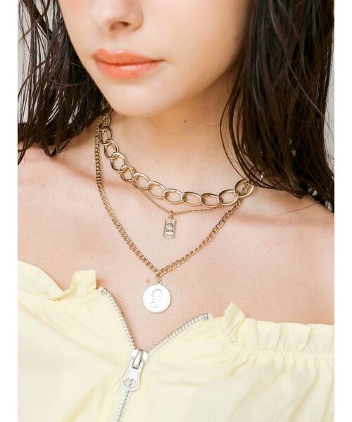EVRIS(エヴリス)で人気だった3連ネックレスのコインを変更した復刻ネックレスです。季節問わずに合わせやすいネックレスでタートルネックや、スクエアなど、様々なトップスに合わせられる使用しやすいアクセサリーです。