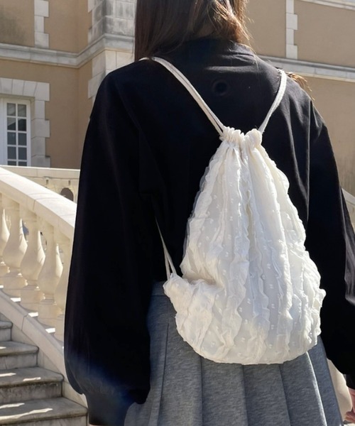 -おすすめポイント♪- スポーティーなアイテムをガーリーな素材で作ったギャップがかわいい! フリル×シアー素材でやわらかい印象のガーリーなナップサック♡ サクッと出し入れできる使い勝手の良さはそのままにどんなコーデにも使える程よい甘さでおすすめのアイテム キーホルダーやバッチでデコるのもおすすめ◎ 裏地付きなので中身は色がわかる程度の透け感 A4サイズもすっぽり入る! 1日出かける分には十分な容量です◎ ガーリーなコーデにはもちろん、カジュアルコーデと合わせて甘カジュMIXにも! コーデのワンポイントにおすすめのアイテムです◎ 普段使いにはもちろんライブなどのイベントにもおすすめ♡ お揃いや色違いでもかわいく使えるアイテムです☆彡 -お買い物をお楽しみいただくために- ◆Instagram◆ lacvert_official 新作情報やルックを配信中 ◆この商品が気になったらお気に入り登録 完売カラーの再入荷通知やセール情報、ラス1情報などの通知を受け取ることができます♪ ◆LAC VERTをお気に入りブランドに登録 新商品や入荷情報を受け取ることができるので、いち早く新作をチェックできます!是非ご登録してくださいね♪ ※撮影時のライティング、ご覧になっているモニター・PC環境により、実際の商品と色味が異なって見える場合がございます。予めご了承下さいませ。 韓国 韓国ファッション 韓国風 韓国アクセサリー セットアクセ アクセサリー きれいめ シンプル 大人 オフィス 結婚式 二次会 オフィスカジュアル 春 夏 韓国通販 かわいい 可愛い おしゃれ オシャレ プチプラ トレンド ストリート 量産型 通勤 通学 ペアルック プチプラ 大人かわいい ワントーン ニュアンス 春服