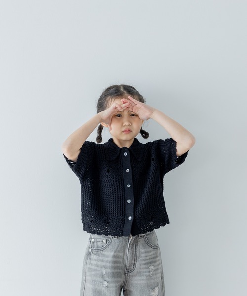 ■デザイン■どこか懐かしく温かみのある雰囲気のかぎ針編みのカーディガン。コンパクトなサイズ感なのでワイドボトムやデニムなどとの合わせがかわいいです!同デザインで大人用もご用意しているので親子リンクも可能です!(291971 カギバリCDSS )