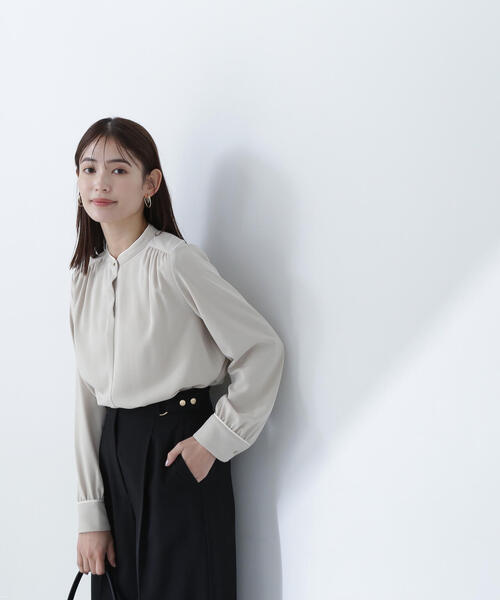 <お仕事シーン・オフィスカジュアルにおすすめ> スタイリッシュな印象のバンドカラーデザインに、襟端の配色とキラリと光るゴールドカラー釦でポイントを効かせたブラウス。ONにもOFFスタイルにも使える、ベーシックでありながらシンプルすぎないデザインです。ジャケットインでも映えるフロントデザインなので長く着ていただけます。 <素材> 肌触りが心地よい合繊素材を使用、シワになりにくく扱いやすいです。ラチネの表面が上品なとろみ素材です。 <詳細> 仕様・前ボタン 裏地・なし 透け感・ややあり / 光沢・なし / 伸縮性・なし 生地の厚さ・普通 ※モデルの着用画像の場合、光の当たり具合により、実際の色味と異なって見えることがございます。色味は、商品単体の画像をご参照ください。 【ZOZOでのお買い物をもっと楽しむために!】 ■ブランド・ショップのお気に入り登録 ・いち早く新作アイテムや限定クーポンなどのお得な情報を受け取ることができます! ■商品のお気に入り登録 ・完売商品の再入荷通知や、残り1点の通知、各種セール通知も受け取ることができ、よりお得にお買い物頂けるチャンスがあります!
