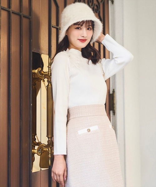 【品の良い華やかさで大人フェミニンに着飾る、ショルダーレース刺繍ニットプルオーバー】【Point】・オーガンジーを重ねた花柄刺繍や、パールやビジューで立体的に作られた3Dパーツが大人フェミニンに着映えるニットプルオーバー。・襟ぐりに余裕を持たせたプチハイネックで、首周りの窮屈感なく着用いただけます。・肌触り滑らかな糸を使用しており、伸縮性が高く、身体のラインをすっきりと見せながらも着心地の良い一着です。ケア方法:手洗い可能透け感:なし裏地:なし伸縮性:あり光沢感:なし生地の厚さ:中肉F:(00):着丈 54.5㎝/バスト 68㎝/肩幅 30.2㎝/袖丈 54㎝/袖幅 13.5㎝/袖口幅 9.5㎝