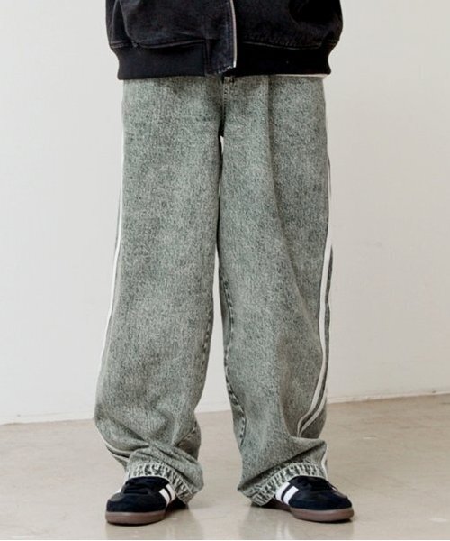 デニムのケミカルウォッシュ加工にこだわった、トレンドのボトムです。サイドのラインがスポーティで、ストリートスタイルや韓国風スタイルにもマッチするアイテム。ウエストはゴムで着脱が楽なイージー仕様。これ一着でトレンド感あふれるスタイルにチェンジできるおすすめの商品です!※モデル着用の商品は、こちらのページの商品以外は参考イメージとなっております。【ご注意点】■色落ち加工を施し、職人により手作業で仕上げている為、製品によって風合いや寸法に個体差がございます。あらかじめご了承ください。■商品特有の匂いがございますが、数回洗濯いただくことで軽減されます。■この製品は非常に色落ち、色移りしますのでご着用の際は下記の点に十分ご注意ください。・着用と洗濯を繰り返すことで色落ちが進み、使い込んだ風合いになります。・白・淡色系衣料品と合わせて着用されると摩擦によって他の衣料品に色移りします。・雨の日、汗等濡れた状態は、さらに他の衣料品等への色落ち色移りがしやすくなります。・保管の際は、色移りを防ぐ為、白・淡色の衣料品と重ねないでください。・日光(または照明)を長時間受けると黄変の恐れがありますので着用・保管の際はご注意ください。【透け感】なし【伸縮性】なし【裏地】なし【ポケット】あり※フロントポケット×2、ヒップポケット×2【アジャスター】なし※ドロスト紐あり