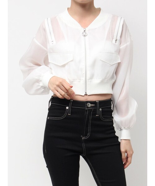 GYDA(ジェイダ)の「SymmetryGYDA ZIP デザインシアーブルゾン(ブルゾン・レディース・オフホワイト/ブラック・F)」の3枚目の写真