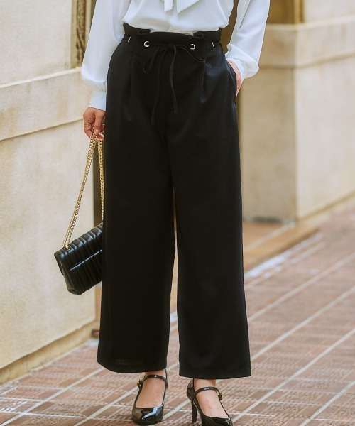 <大きいサイズ> やわらか素材リボンデザインストレートパンツ(9分丈)(セットアップ対応)