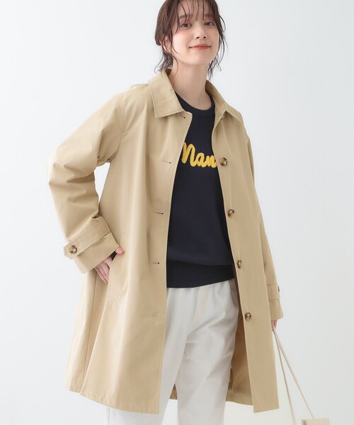 【デザイン】 身幅は程よいゆとりがあり着やすく、 お袖まわりはきちんと見えるようなシルエットにこだわりました。 シンプルなステンカラーのコートで着回しやすく、バランスの取れたスタイリングが叶います。 防花粉加工・撥水加工も嬉しいポイント。 春に活躍するアウターです。 【スタイリング】 パンツでもスカートでもカジュアル過ぎずにすっきりときれいに着こなせます。 中にニットなども着こめるサイズ感なので、長いシーズン着ていただけます。 合わせるもの次第で様々なシーンで活躍でき、お出かけはもちろん、セレモニーのアウターとしても着用できるのでおすすめです。 【素材】 良質で少しハリ感のある素材、防花粉・撥水加工も嬉しいポイント。 【仕様】 ・ポケット数:横×2 ・裏地あり ※照明の関係により、実際よりも色味が違って見える場合があります。また、パソコン・スマートフォンなどの環境により、若干製品と画像のカラーが異なる場合もございます。 モデル情報:身長166cm B80 W59 H85 着用サイズ:02(M) 店舗へのお問い合わせ商品番号:C62-92002 ●製品寸法: 01(S):着丈90cm B99cm 袖丈56cm 肩幅42cm 02(M):着丈92cm B102cm 袖丈57cm 肩幅43cm 03(L):着丈94cm B105cm 袖丈58cm 肩幅44cm 04(LL):着丈96cm B108cm 袖丈59cm 肩幅45cm 備考:重量:約575g(サンプルサイズ)