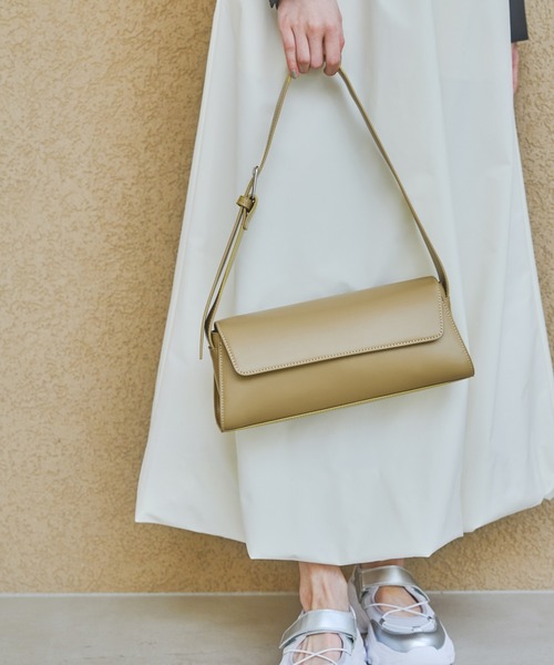 横長の立体的なフォルムが特徴的な上品な印象のワンショルダーバッグ。 コンパクトで横長のシルエットがポイントです。 なめらかな表面感が高見えし、幅広いスタイリングに合わせやすいアイテム。 メインポケットには500mlのペットボトルが収納でき、内側と背面にもポケットが付いているので、荷物を整理できます。 ショルダー紐は長さ調整が可能で、シーンに合わせてお使いいただけます。