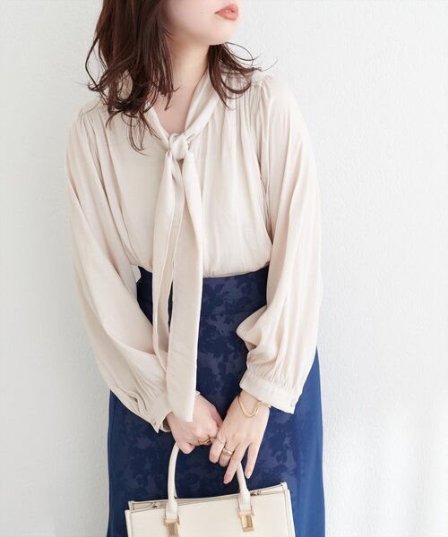 【2025SS natural couture】 フェミニンな魅力をプラスしたリボンタイブラウス ■Design naturalcouture定番、マット釦とろみサテンBLの シンプルなノーカラーデザインをアップデートし、上品なリボンタイをプラスしました。 たっぷりと施されたギャザーや柔らかなとろみ素材はそのままに、 リボンタイがフェミニンな印象と優しさを演出。 光沢を抑えた繊細な質感のサテン素材には、 シワになりにくくお手入れが簡単なポリエステル100%を採用しました。 裾に向かってフレアになるシルエットが体型カバー効果も◎ ■Styling リボンタイがコーディネートに華やかさをプラスしてくれるので、 フレアスカートやタイトスカートにウエストインすれば、 オフィスやフォーマルなシーンでも上品にまとまります。 また、デニムやテーパードパンツに合わせて、 きれいめカジュアルコーデを楽しむのもおすすめです◎ キャミワンピースのインナーとしてもアクセントを添えてくれる万能アイテムです。 ■Fabric 落ち感のあるポリエステル素材を使用。 リボンタイデザインでも堅苦しくなく、デイリーから特別な日まで活躍します。 豊富なカラーバリエーションで、好みのスタイルに合わせて選べる1枚です。 お手入れ方法:手洗い ※着用、お取り扱いの際は、商品に付いている品質表示とアテンションタグを必ずご確認ください。 【お気に入り登録でお得な情報がいっぱい】 ・「商品のお気に入り登録」で再入荷通知や、ラスト1点の通知、セール通知をいち早く受け取ることができます。 ・「ブランドのお気に入り登録」で新商品や再入荷など、お得な情報を受け取ることができます! ※店舗の入荷時期は商品によって異なります。 店頭の在庫状況につきましては各店舗にてお問い合わせください。 ※撮影時の光の関係で、画面上の画像と実際のお色とでは若干の色差が生じる可能性がございます。 また、ご覧いただいているモニター画面や、お使いのブラウザによっても、お色の違いがございますことをあらかじめご了承くださいませ。